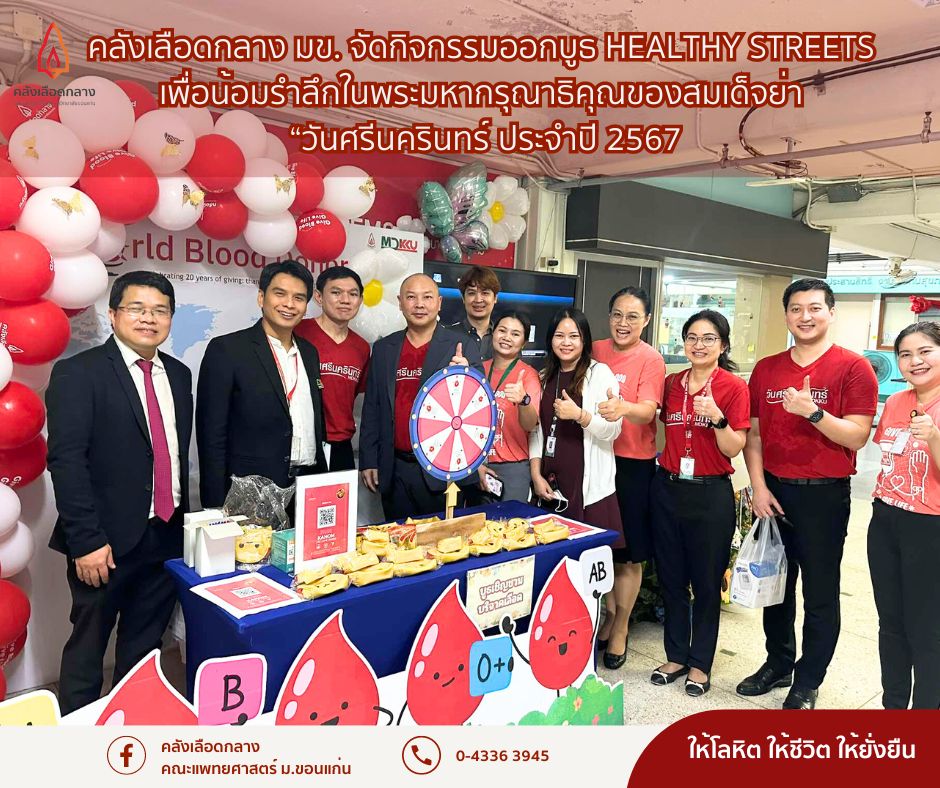 คลังเลือดกลางร่วมจัดกิจกรรมออกบูธ Healthy Streets และทำบุญโรงทานวันศรีนครินทร์