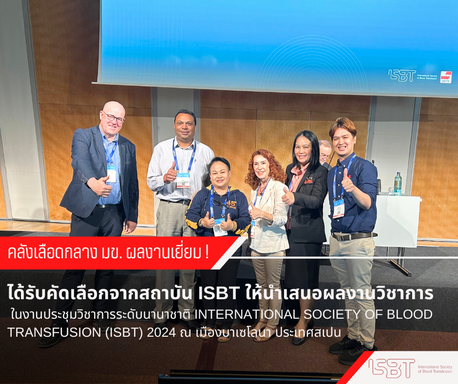 คลังเลือดกลาง มข. ผลงานเยี่ยม ! ได้รับคัดเลือกจากสถาบัน ISBT ให้นำเสนอผลงานวิชาการ